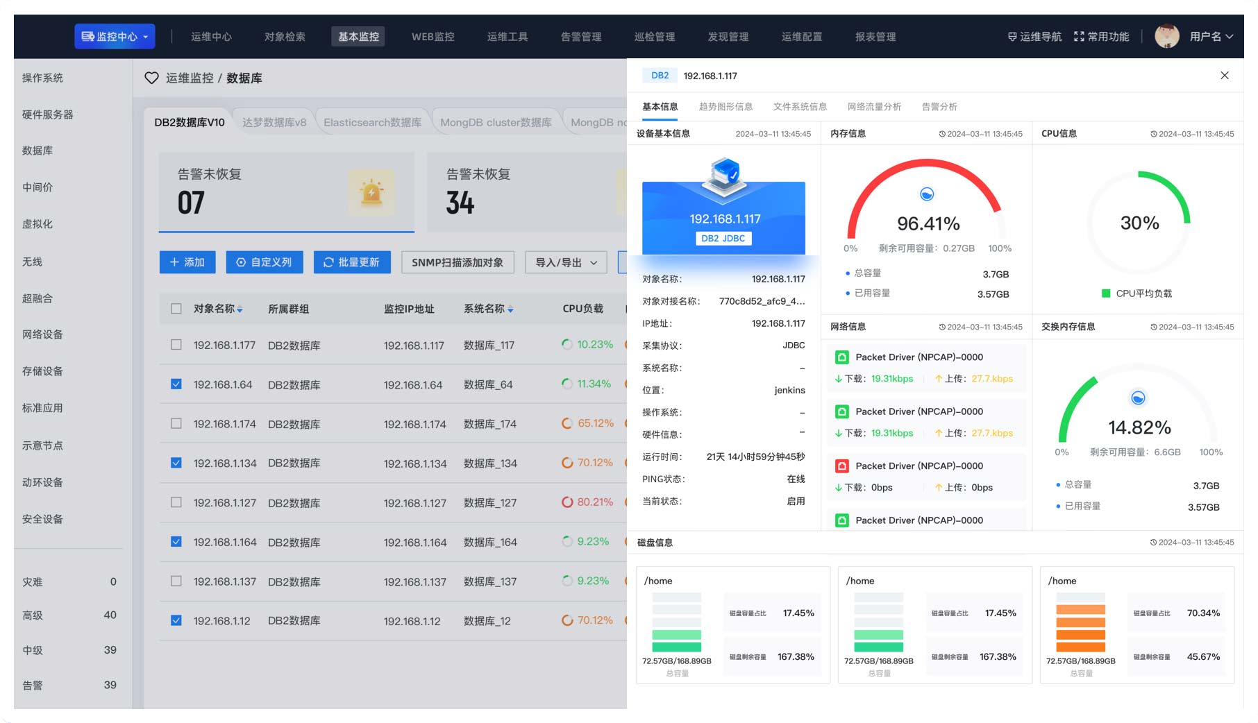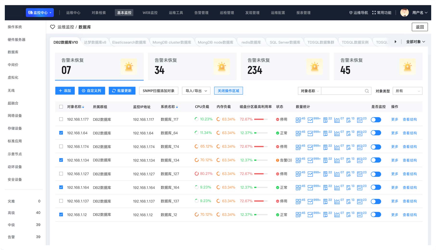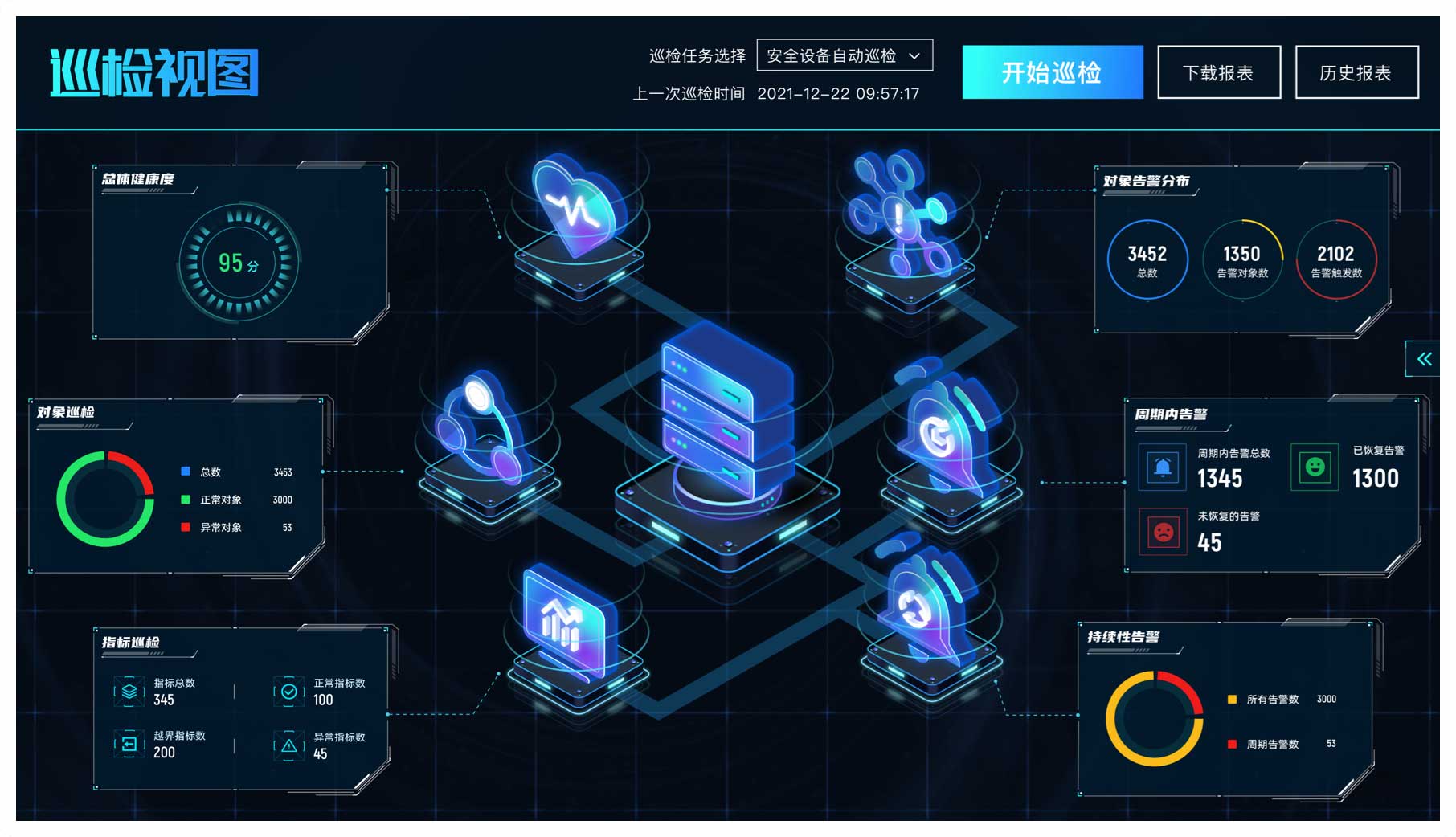 从广度和深度这两个维度实现异构IT基础架构中软硬件设备的监控;支持多种监控方式,支持自定义构建指标模型