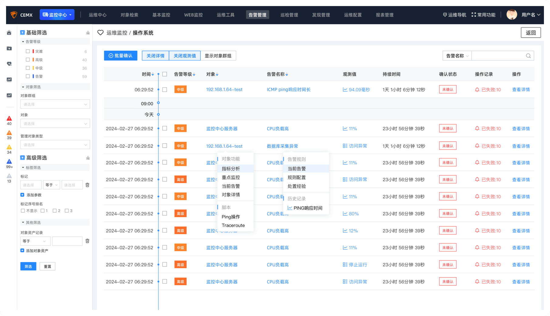 从广度和深度这两个维度实现异构IT基础架构中软硬件设备的监控;支持多种监控方式,支持自定义构建指标模型