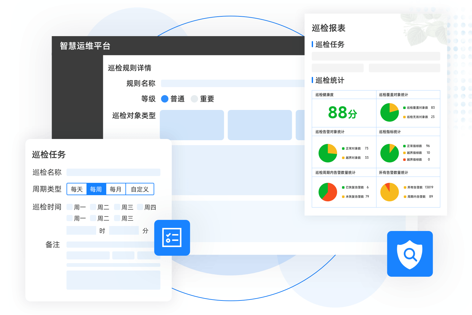 收集网络环境中不限于安全设备等的日常运行状态数据并根据预设巡检策略分析其健康情况